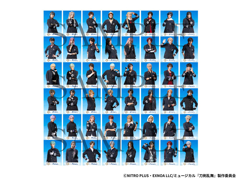 Touken Danshi: Mikazuki Munechika, Kogitsunemaru, Ishikirimaru, Iwatooshi, Imanotsurugi, Kashuu Kiyomitsu, Yamatonokami Yasusada, Izuminokami Kanesada, Horikawa Kunihiro, Hachisuka Koutetsu, Nagasone Koutetsu, Nikkari Aoe, Sengo Muramasa, Tonbokiri, Monoyoshi Sadamune, Ookurikara, Higekiri, Hizamaru, Mutsunokami Yoshiyuki, Tomoe-gata Naginata, Akashi Kuniyuki, Tsurumaru Kuninaga, Otegine, Kotegiri Gou