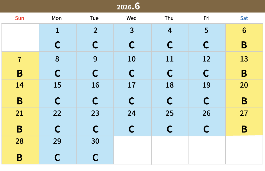 PeriodOnly available on weekends, holidays, and during long holidays such as summer vacation